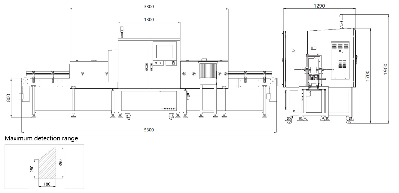 Remarks: The size of the detectable foreign matter is related to the material composition, packaging material, thickness and other parameters in the product. Please refer to the actual product test results.