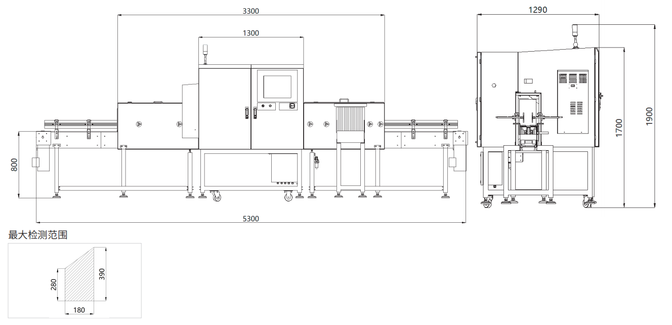 不銹鋼球:0.3mm; 不銹鋼絲:0.2*2mm 陶瓷玻璃球:1.0mm 備注:可檢測的異物尺寸與產(chǎn)品內物質成分、包裝材料、厚度大小等參數(shù)有關系,請以實際產(chǎn)品測試結果為準。 |